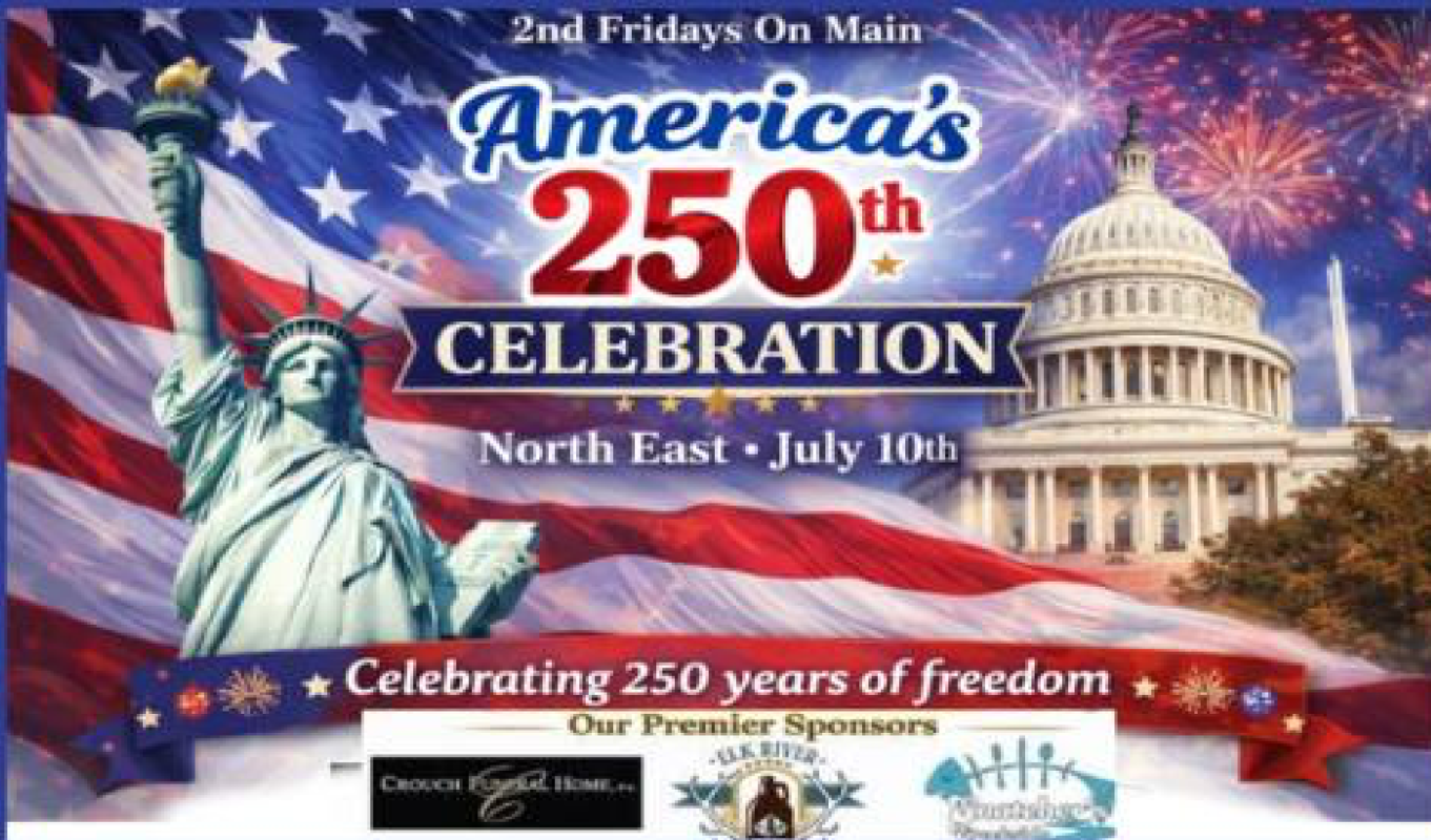 🎶 The Everafter Band will be performing on the Green thanks to the generosity of Shady Beach Kennel, Foraker Realty and Cecil County VFW. Snatchers Creekside and Elk River Brewing Company will also be providing music as we set the soundtrack for a summer night celebrating 250 years of America!