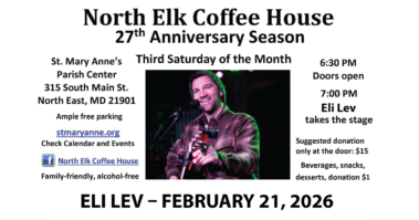 – Feb 21 Live Music with Eli Lev at North Elk Coffee House (inside St. Mary Anne’s Episcopal Church)